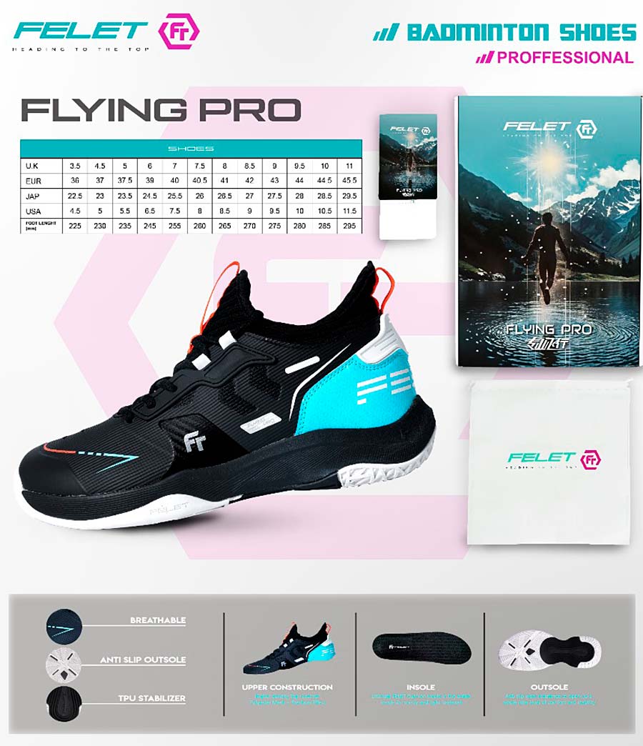 【FELET】FLYING PRO V2黑 國際選手同步『信任』羽球鞋
