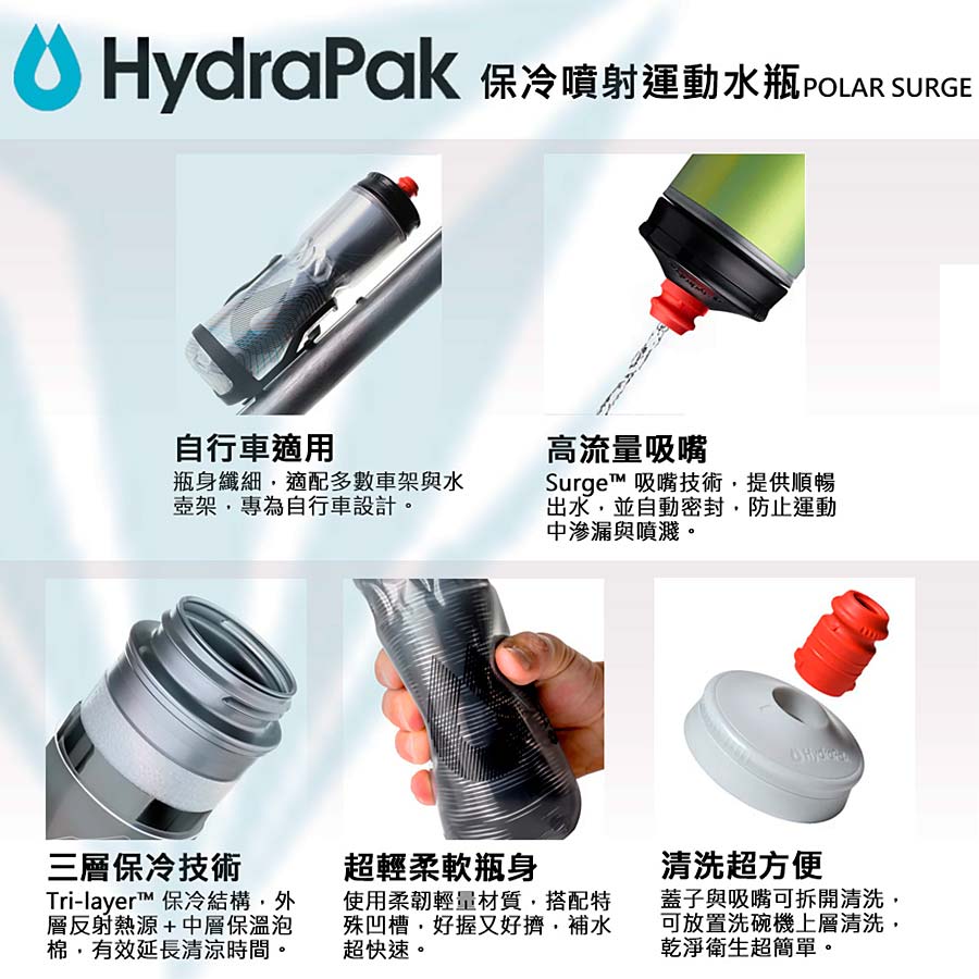 【HydraPak】Polar™ Surge YELL 保冷 噴射運動水瓶700ml