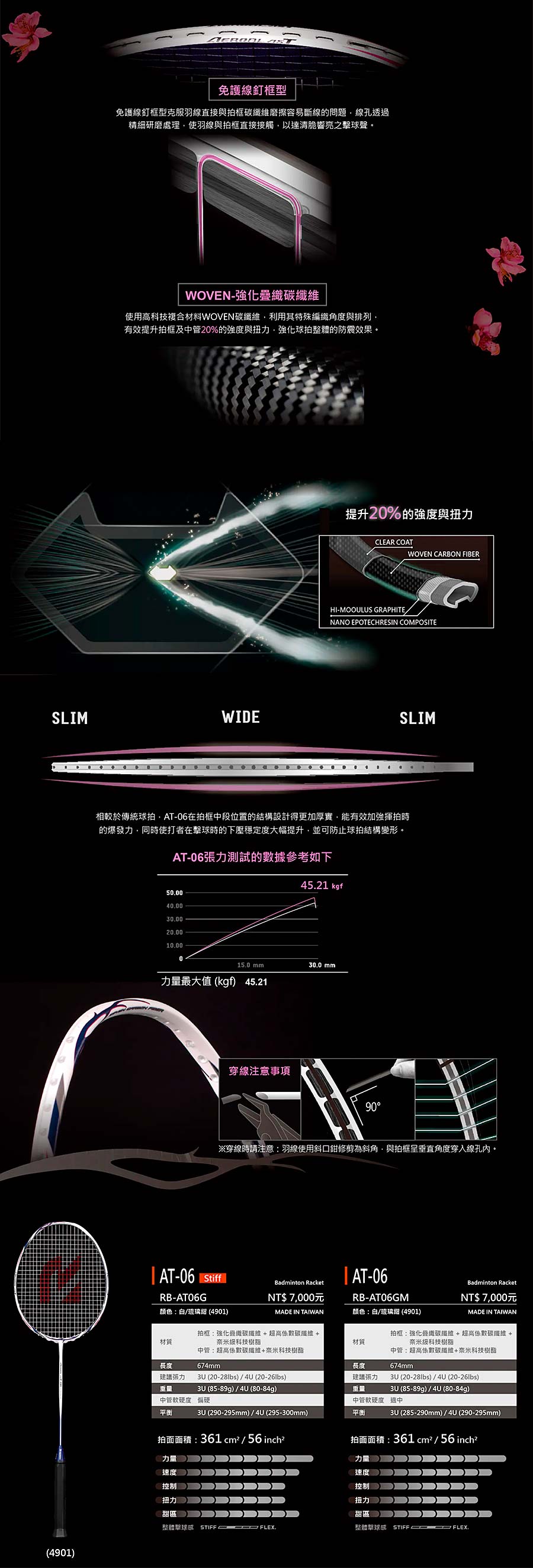 【REDSON】AT-06白琉璃紺 4U5偏硬版全新調校羽球拍